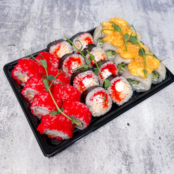 филадельфия том ям, ролл икорный краб, ролл две рыбы