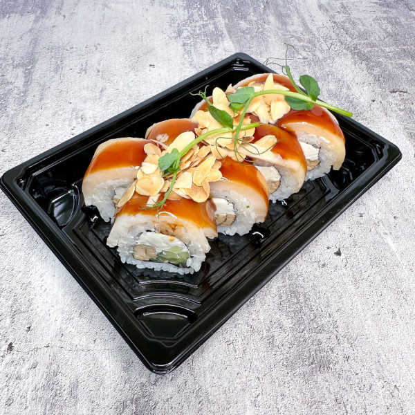 рис, нори, огурец, омлет тамаго, сыр, филе эсколара х/к, унаги, миндаль